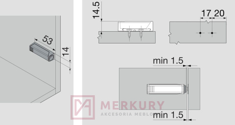- Montaż na wkręty do płyt wiórowych fi 3,5mm lub fi 4mm lub za pomocą Eurowkrętów