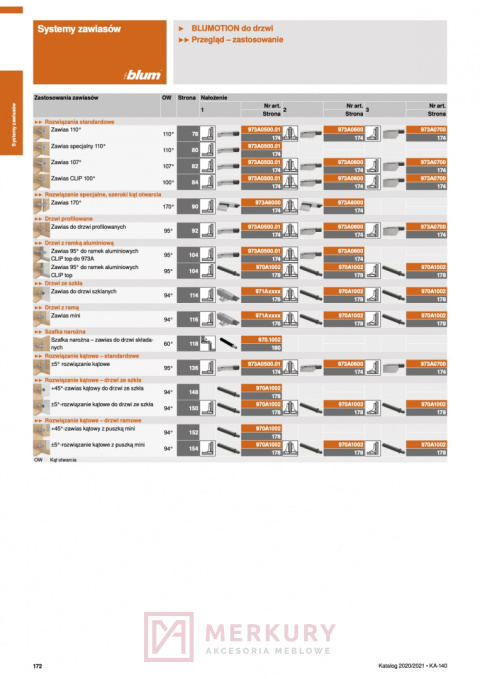 - do zawiasów: CLIP TOP 110°, specjalny 100°, 107°, CLIP 100°