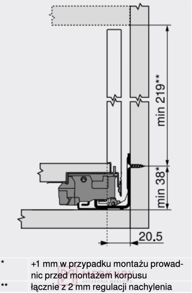 8. Profesjonalny montaż: * Jeśli nie masz doświadczenia w montażu mebli, zleć montaż prowadznic profesjonaliście.