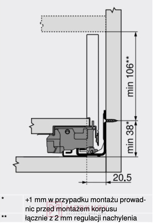 8. Profesjonalny montaż: * Jeśli nie masz doświadczenia w montażu mebli, zleć montaż prowadznic profesjonaliście.