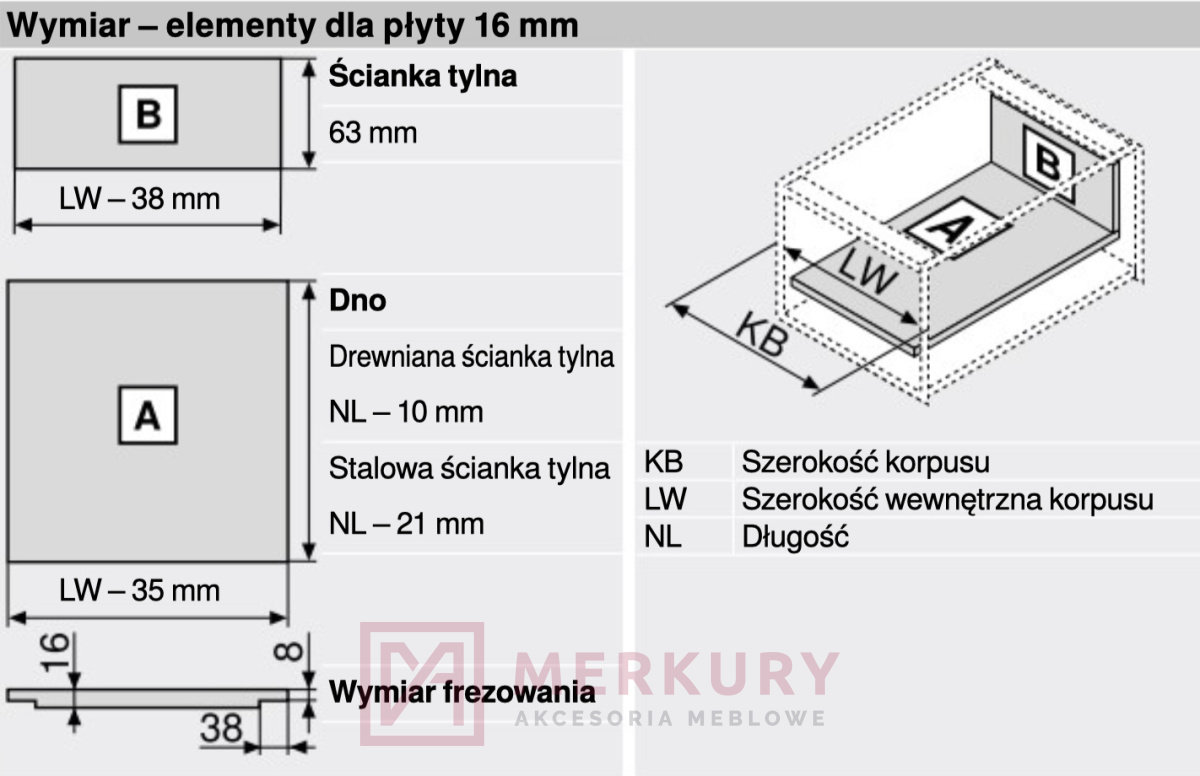 - Zestaw zawiera Lewy + Prawy bok szuflady