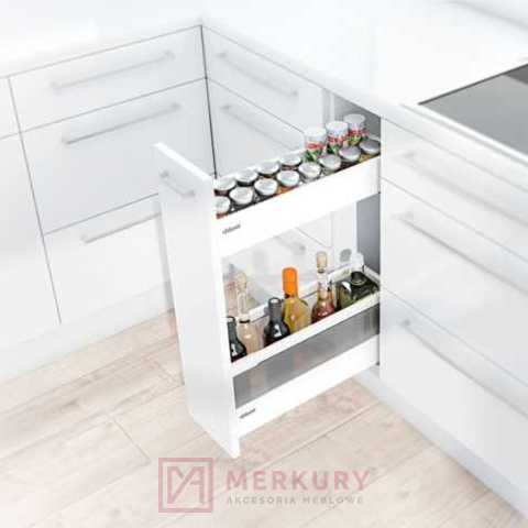 Dzięki CARGO MINI BLUM można wykorzystać nawet najmniejszą wolną przestrzeń, tworząc dodatkowe miejsca użytkowe. Nowoczesny i niezwykle praktyczny sposób na zagospodarowanie niewielkiego miejsca w kuchni. Dodatkowo pełny wysuw prowadnicy gwarantuje łatwy dostęp do całej zawartości szafki. Funkcjonalne rozwiązanie do każdej kuchni.