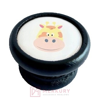 Gałka dziecięca drewniana GD07, czarny mat, krówka V45