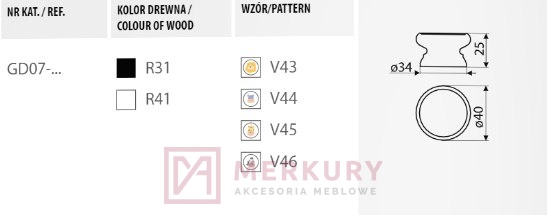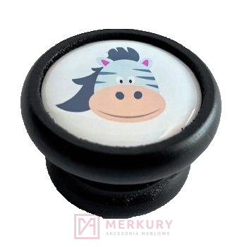 Gałka dziecięca drewniana GD07, czarny mat, zebra V46