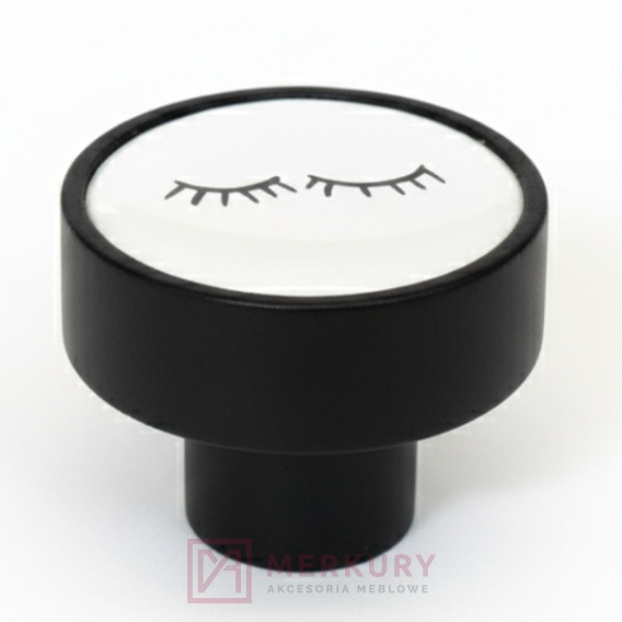Gałka meblowa drewniana czarna GD08, rzęsy na białym tle V40