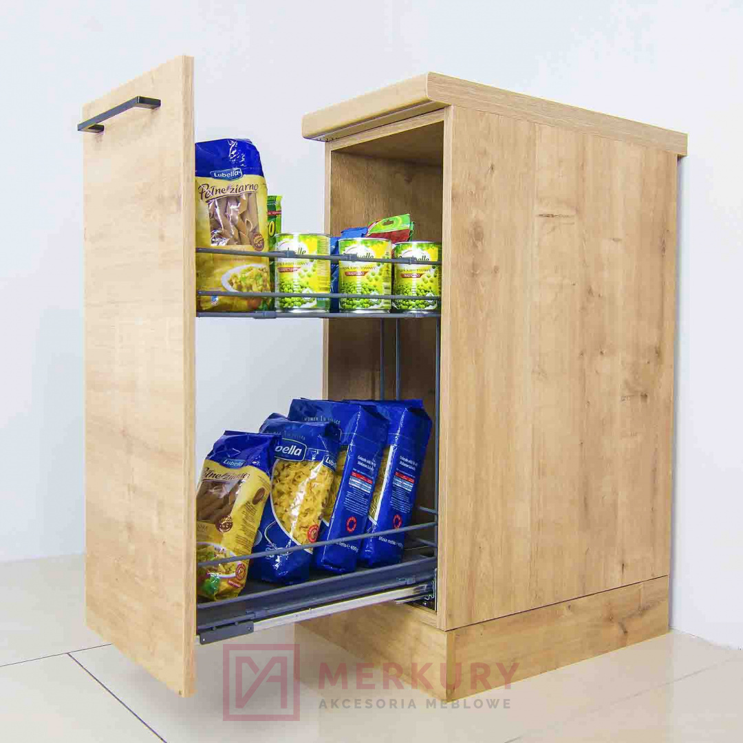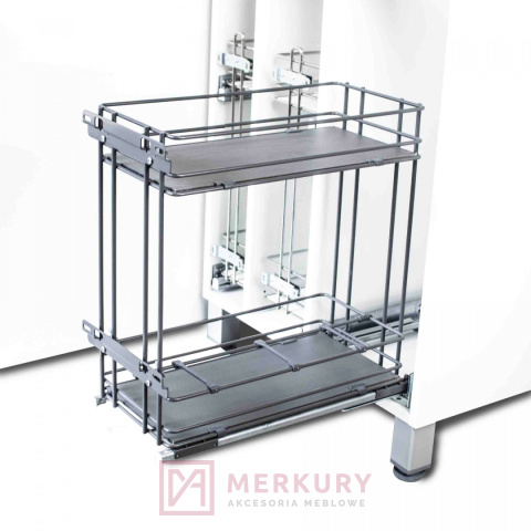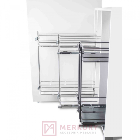 Kosz Cargo mini występuje w dwóch wariantach kolorystycznych: biel połączona z chromem oraz antracyt. Z takim wyborem znajdziesz ten, który najlepiej pasuje do kolorystyki Twojej kuchni. Oprócz funkcji estetycznej kosz Cargo Mini jest bardzo wytrzymały oraz kompaktowy. Każda z półek posiada antypoślizgowe pełne dno oraz reling wokół powierzchni, które zabezpieczają umieszczone na niej produkty przez nagłym przemieszczaniem.