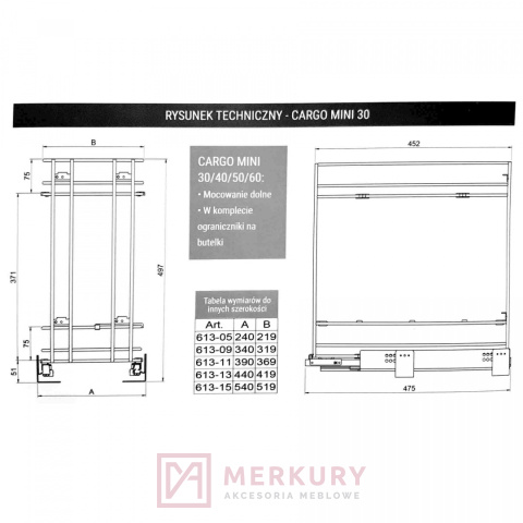 Kosz Cargo Mini to świetne rozwiązanie dla Twojej kuchni. Niesamowicie ułatwi Ci życie dbając o zagospodarowanie problematycznych oraz trudno dostępnych szafek. Niesamowicie ułatwi Ci życie, gwarantując optymalną organizację przestrzeni, bo z nim segregacja produktów i przechowywanie jest bardzo proste. Pomaga w zagospodarowaniu problematycznych oraz trudno dostępnych szafek. System Cargo Mini oparty jest na działaniu solidnych prowadnic, które zapewniają cichą oraz płynną pracę. Funkcja pełnego wysuwu zapewni Ci szeroki dostęp do przechowywanych produktów. Funkcja slow motion pozwala na wyhamowanie zamykanego kosza i powolne dociągnięcie go do pozycji zamkniętej unikając trzaśnięcia. Dużym atutem produktu jest jego solidność a tym samym długotrwałość.