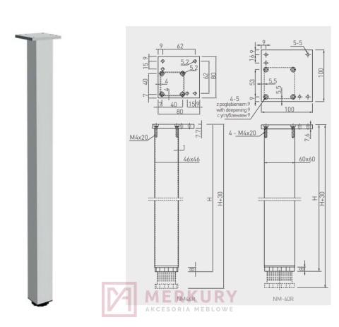 Noga meblowa kwadratowa jest wykonana z dobrych jakościowo materiałów dlatego charakteryzuje się wysoką trwałością. Jej design sprawia, że będzie pasować zarówno do aranżacji nowoczesnych jak i klasycznych. Produkt pozwoli nadać Twojemu wnętrzu świeżości i modnego charakteru. Noga stołowa świetnie zintegruje się z zabudową meblową łącząc stabilność z unikatowym wyglądem.