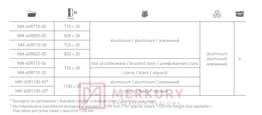 Noga do mebli H-7100 latami będzie zachowywać doskonały wygląd. Funkcjonalna oraz nowoczesna noga stołowa będzie idealną podporą dla Twojego blatu lub stołu, zapewniając im niesamowitą stabilność. Jej prosty kształt świetnie wpasuje się w każde wnętrze. Kwadratowe nogi do stołu dostępne są w kilku wysokościach oraz kolorach pokrycia - sprawdź je już teraz!