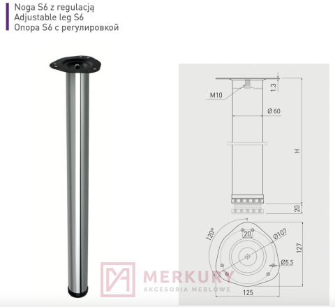 Noga stołowa regulowana, chrom połysk, fi 60mm, H-820mm