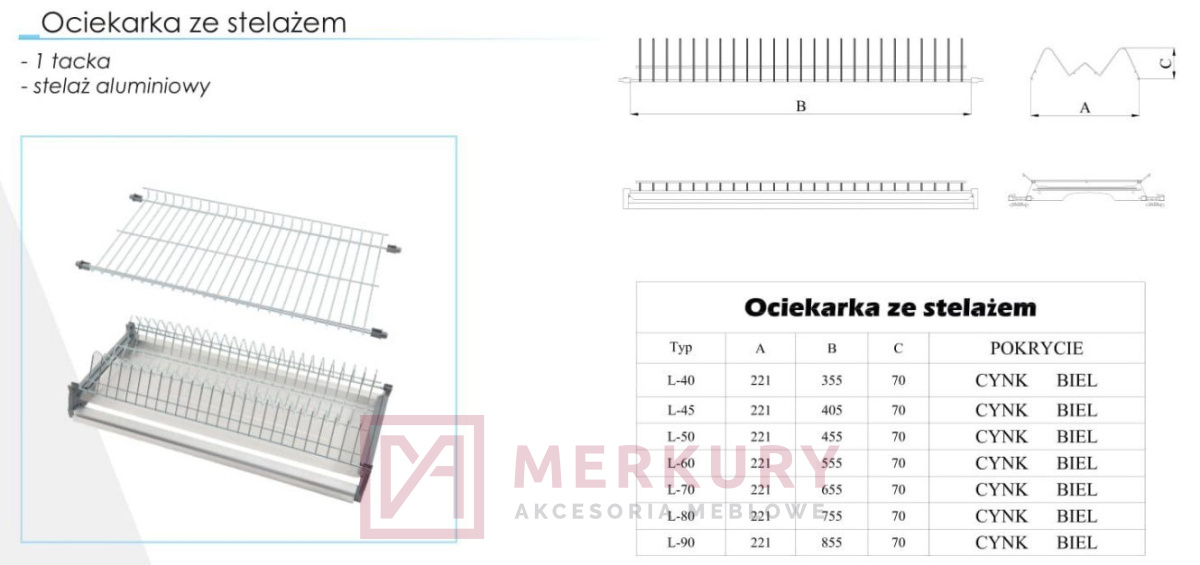 Ociekarka dwupoziomowa ze stelażem, do szafki 70cm, biała