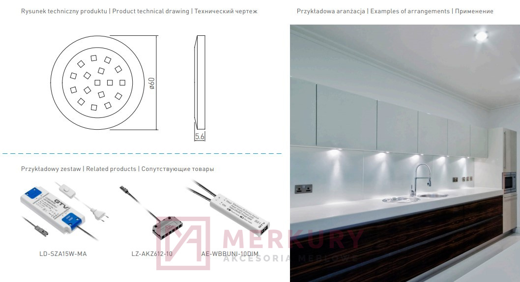 - Zastosowanie: oświetlenie kuchni, salonu, pokoju, zabudowy meblowej