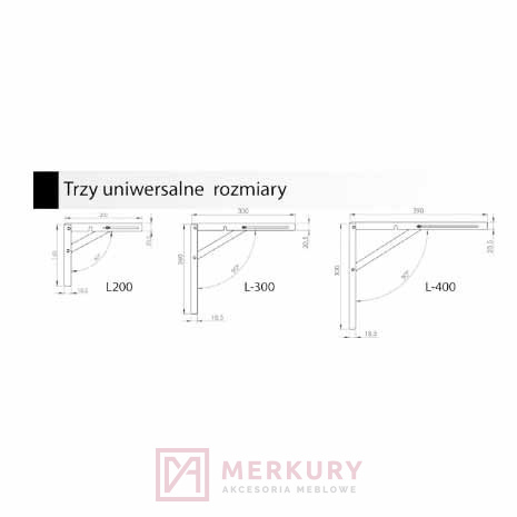 Podpórka półki składana, wspornik, kątownik, czarny, L-300