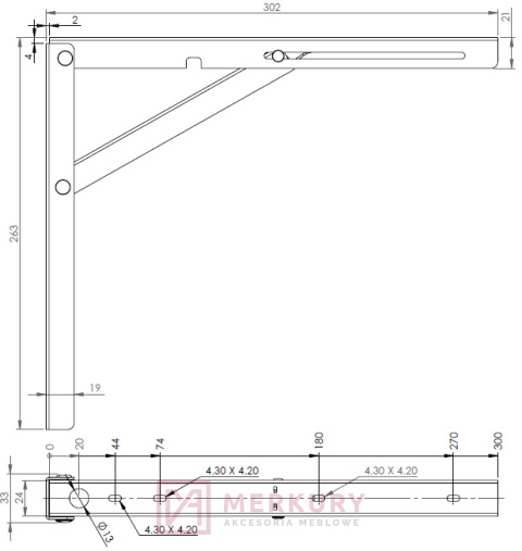Podpórka półki składana, wspornik, kątownik, satyna mat, L-300