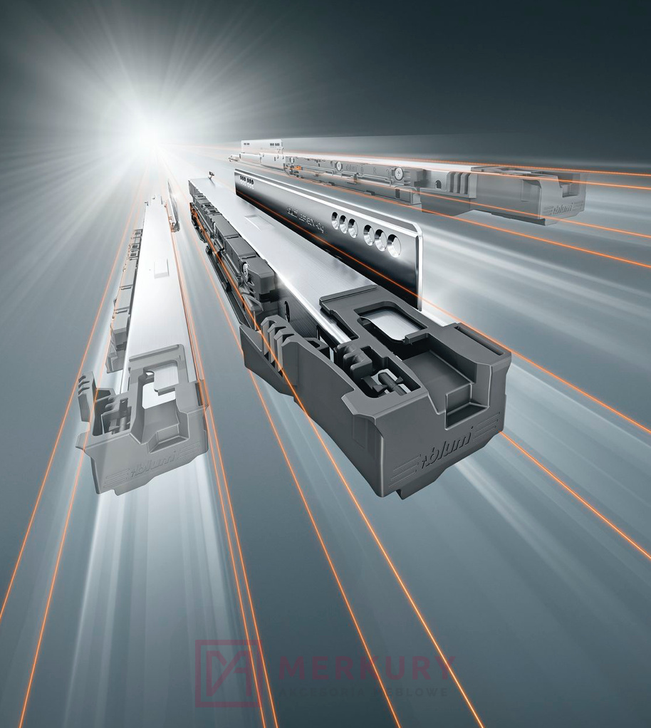 - Komplet prowadnic LEGRABOX ze zintegrowanym, przestawnym BLUMOTION S