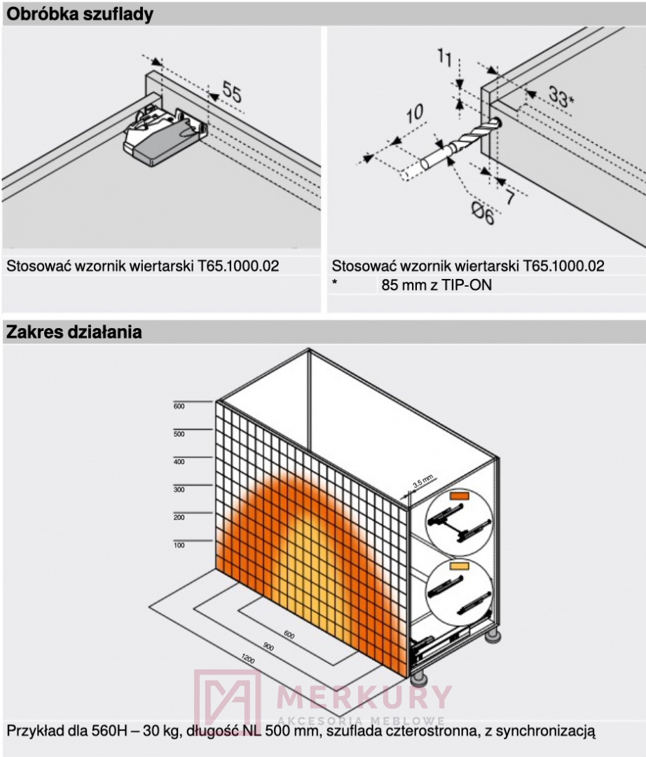 - Do boków drewnianych płyt szuflad o grubości od 11 do 16mm