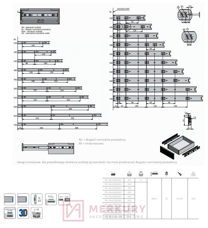 3. Użytkowanie: * Używaj prowadznic zgodnie z ich przeznaczeniem. Nie stosuj ich do celów, do których nie są przystosowane. * Unikaj gwałtownych ruchów i szarpania podczas otwierania i zamykania szuflad lub innych ruchomych elementów mebla.