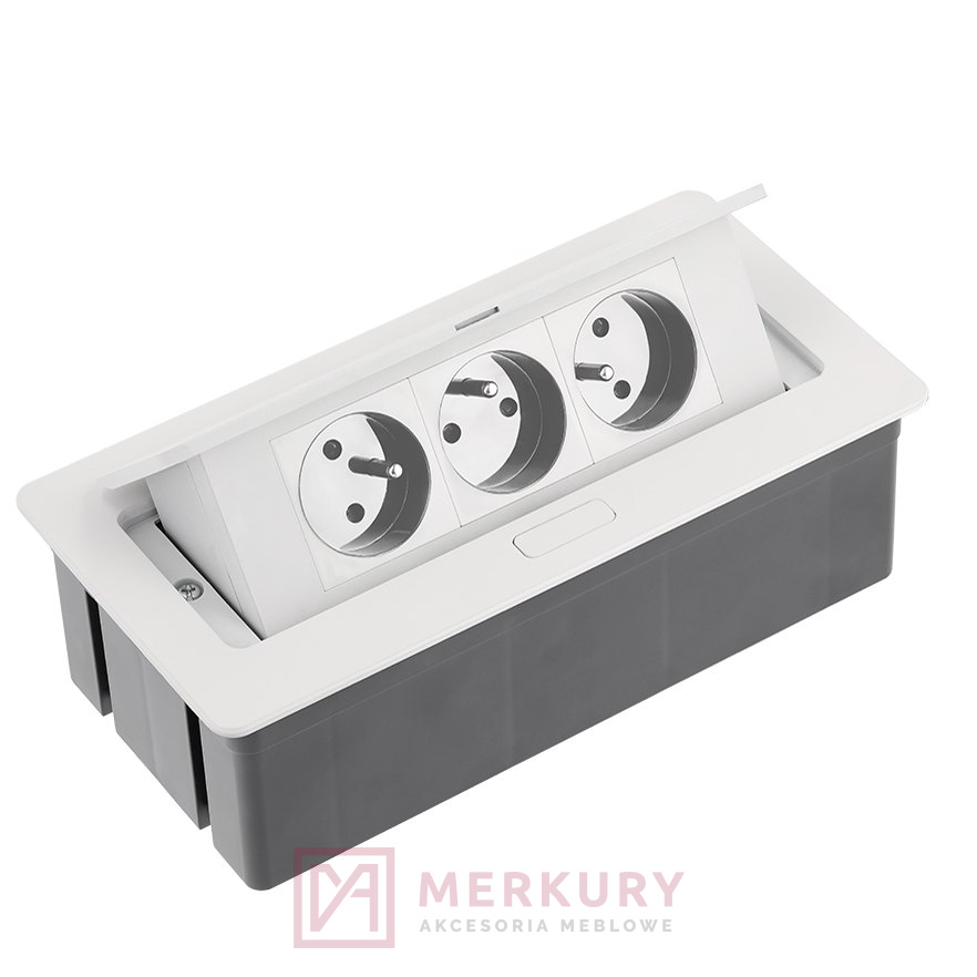 Gniazdo chowane w blacie zapewnia bezpieczeństwo zasilanym urządzeniom dzięki zabezpieczeniom antyprzepięciowym oraz chroni przed przegrzaniem. Montaż przedłużacza jest bardzo łatwy, polega na wycięciu odpowiedniego otworu w blacie, wystarczą do tego podstawowe narzędzia. Port przeznaczony do suchych pomieszczeń.