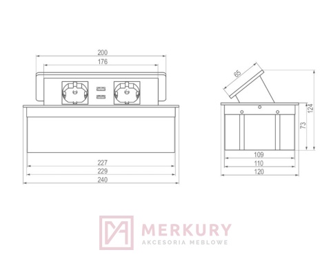 Przedłużacz biurkowy wpuszczany ELEKTRIMA KWADRO TR19, 2 gniazda, 2xUSB, biały