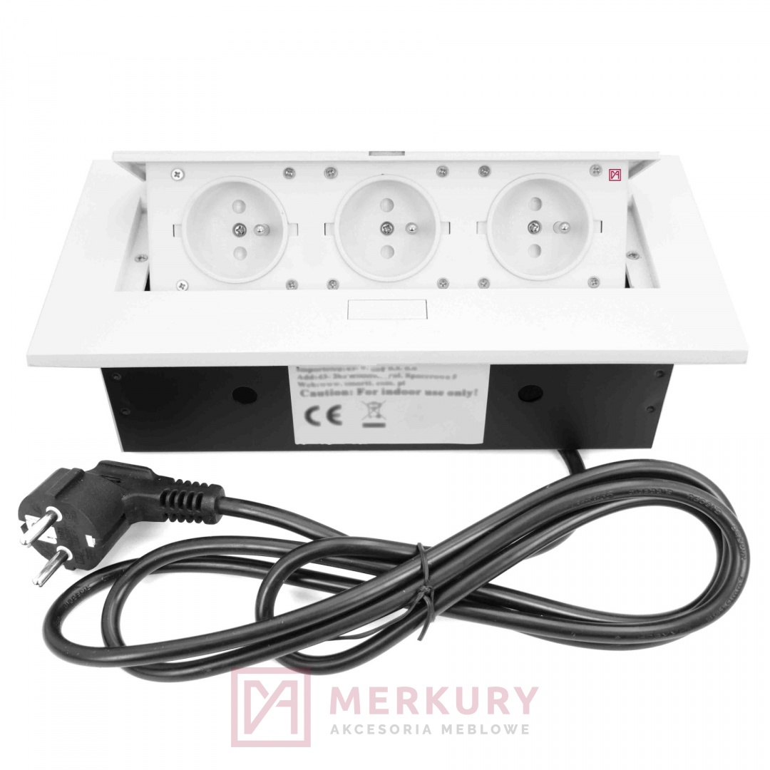 Przedłużacz biurkowy wpuszczany POWER PORT, 3 gniazda, biały