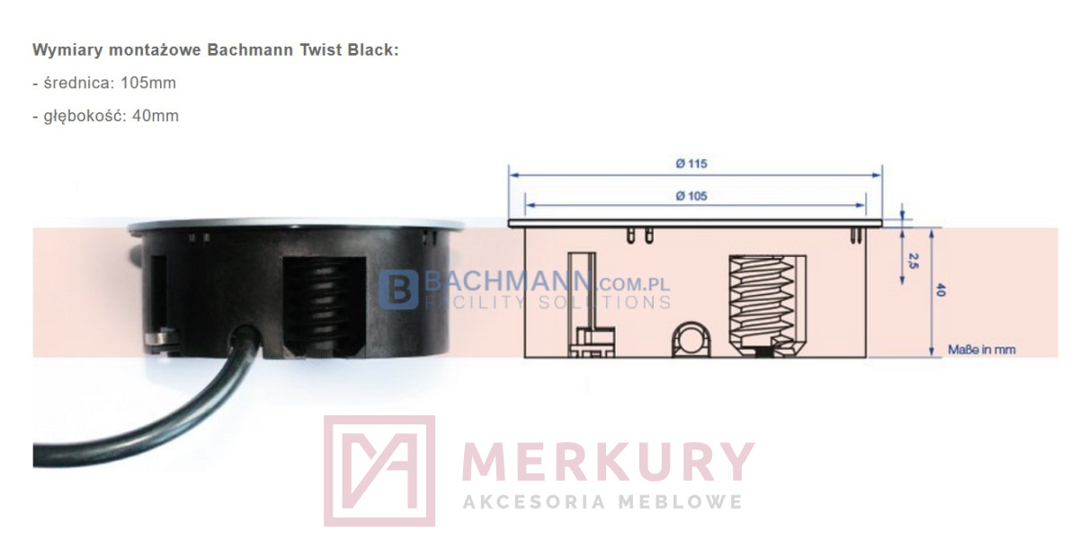 Przedłużacz biurkowy wpuszczany TWIST Bachmann