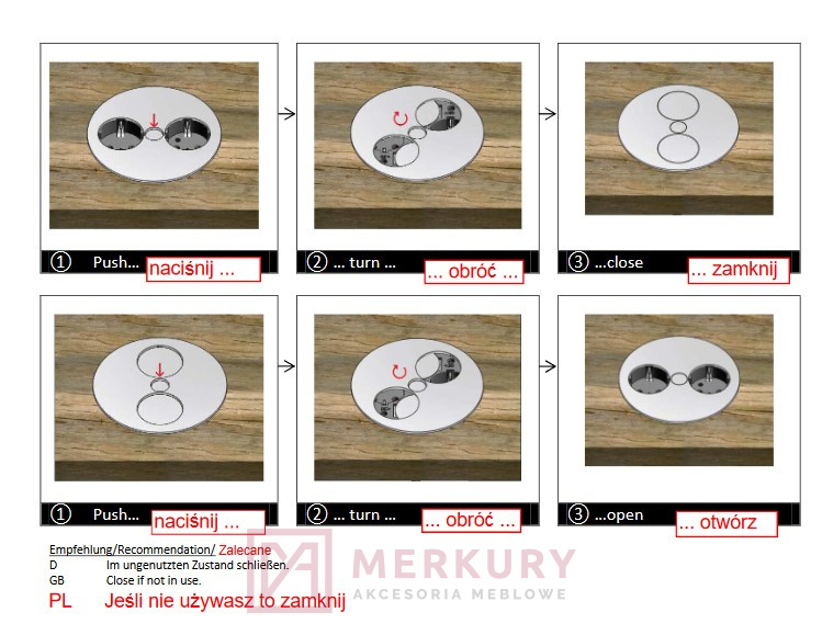 Gniazdo chowane w blacie zapewnia bezpieczeństwo zasilanym urządzeniom dzięki zabezpieczeniom antyprzepięciowym oraz chroni przed przegrzaniem. Montaż przedłużacza jest bardzo łatwy, polega na wycięciu odpowiedniego otworu w blacie, wystarczą do tego podstawowe narzędzia. Port przeznaczony do suchych pomieszczeń.