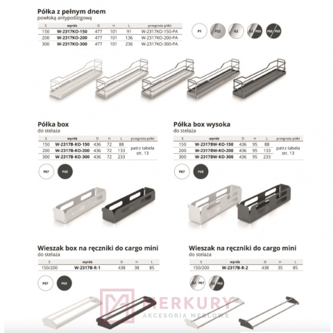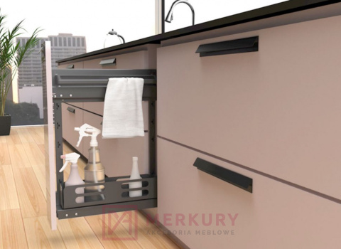 Stelaż Cargo mini to świetne rozwiązanie dla Twoich szafek kuchennych. Niesamowicie ułatwi Ci życie, gwarantując optymalną organizację przestrzeni, bo z nim segregacja produktów i przechowywanie jest bardzo proste. Dzięki pełnemu wysuwowi masz łatwy dostęp do całej zawartości oraz swobodny wgląd do szafek jednocześnie z obu strona, natomiast system cichego domyku gwarantuje Ci miękkie domykanie kosza. Jego uniwersalna konstrukcja umożliwia stosowanie półek z pełnym dnem lub półek z boxem i wieszaków na ręczniki.
