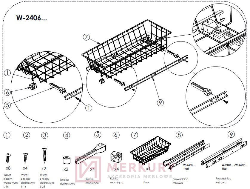 • Wysokość kosza z prowadnicami: 170mm