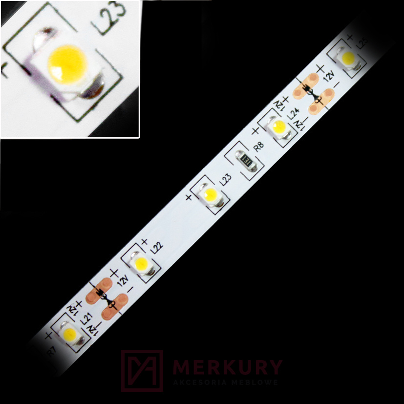 • Taśma LED TL-3528, 8mm, 60LED, 4,8W/m, zimny biały, 5m