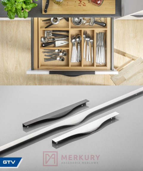 Uchwyt o zaokrąglonych krawędziach nadaje meblom niepowtarzalnego stylu.