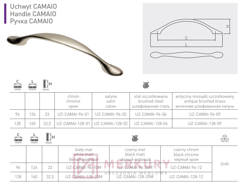 Uchwyt meblowy CAMAIO, biały mat, 128mm