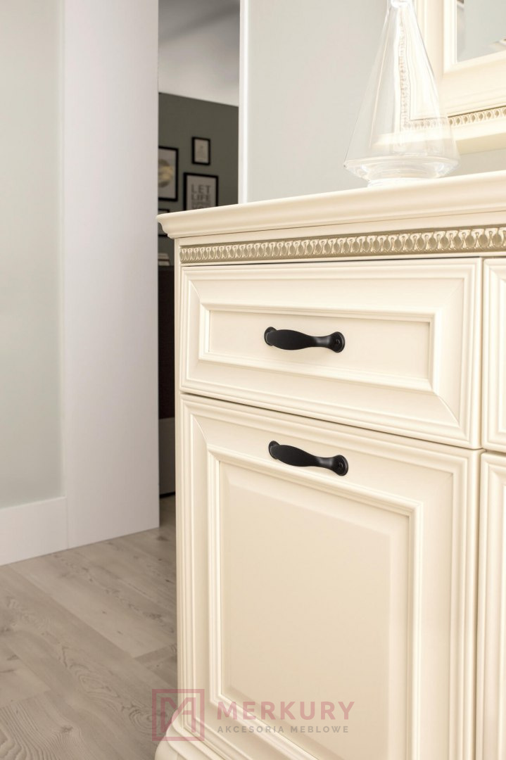 Wykonany w stylu retro uchwyt idealnie komponuje się z drewnianymi meblami, nadając im perfekcyjnego wyglądu. Świetnie wpasuje się we wnętrza w stylu industrial oraz vintage.