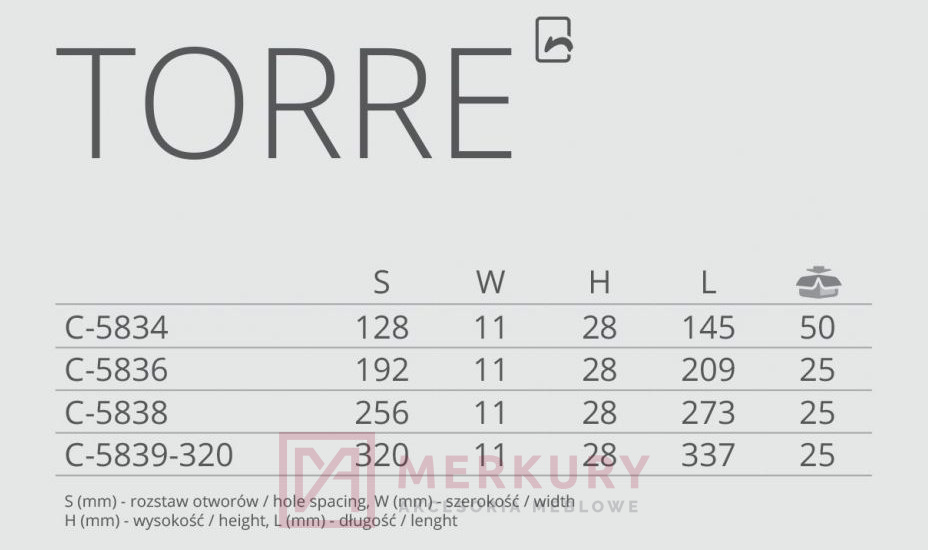 Uchwyt meblowy TORRE C-5838, chrom połysk, 256mm