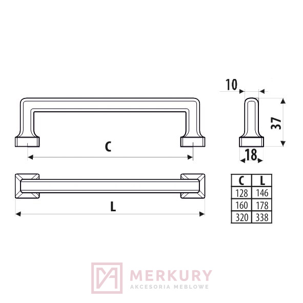 Uchwyt meblowy UR47, czarny mat, 160mm
