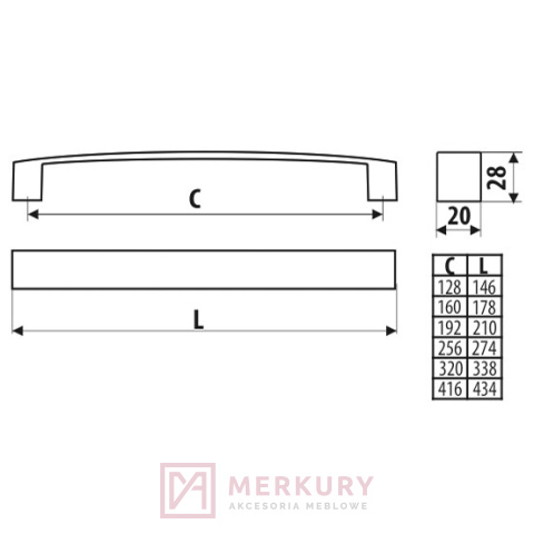 Uchwyt meblowy UU24, satyna mat, 160mm