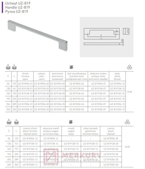 Uchwyt meblowy UZ-819 to designerski produkt, który idealnie wpisuje się w normy stylu nowoczesnego, minimalistycznego czy skandynawskiego. Jego smukły kształt stworzy zgrane połączenie z szafkami kuchennymi, łazienkowymi jak i również będzie idealnym dodatkiem do komód. Minimalizm zachowany w kształcie uchwytu pozwoli Ci stworzyć wymarzony efekt w swoim wnętrzu.