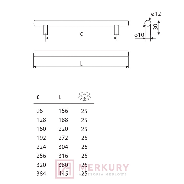 Uchwyt meblowy relingowy BELLA, czarny, 192/252mm
