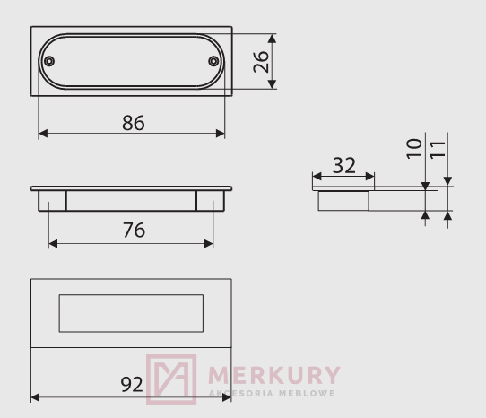 Uchwyt meblowy wpuszczany MD13, satyna mat, 76mm