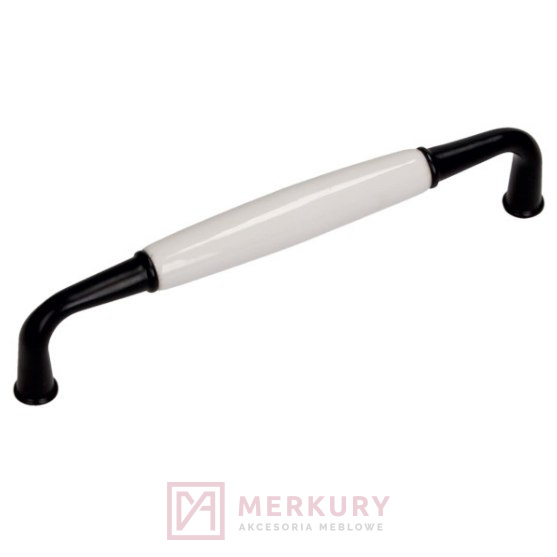 Uchwyt porcelanowy UP16, czarny mat, porcelana biała, 128mm
