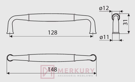 Uchwyt meblowy wykonany w stylu retro świetnie komponuje się z drewnem.
