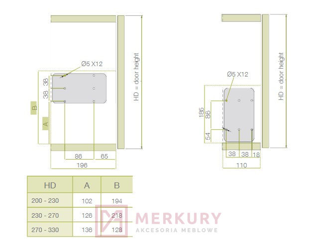 Widoczny na zdjęciu zawias nie jest w zestawie.