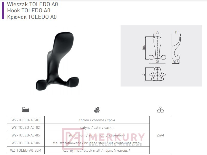 Wieszak meblowy TOLEDO A0, chrom połysk