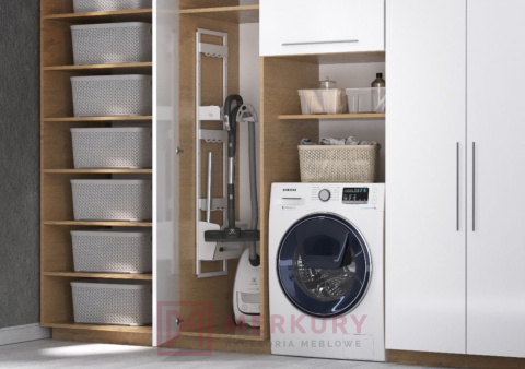 Uniwersalny organizer szafki gospodarczej zapewni Ci nieskazitelny porządek i prawidłową organizację szafy. Dodatkowe półki oraz wieszaki zapewnią jeszcze lepsze zagospodarowanie przestrzeni. Istnieje możliwość dowolnej konfiguracji kosza.