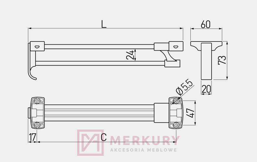 Wieszak wysuwany do szafy WSD, L-350mm, chrom połysk