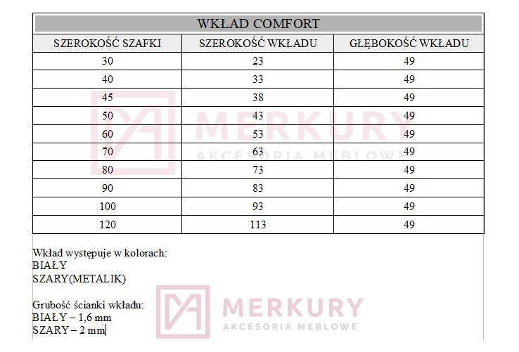 Wkład COMFORT pasuje do większości modeli szuflad oferowanych na polskim rynku. Możesz samodzielnie przyciąć swój wkład do ok. 2,5 cm z każdej strony, by lepiej go wpasować do szuflady. Wykonany jest z tworzywa sztucznego o grubości 1,6mm. Wkład COMFORT pasuje do szuflad: BLUM Tandembox, GTV Modern Box, AMIX System Box itp.