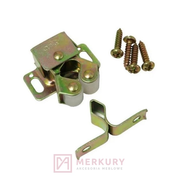 Zatrzask meblowy rolkowy drzwi z blachą, żółty ocynk