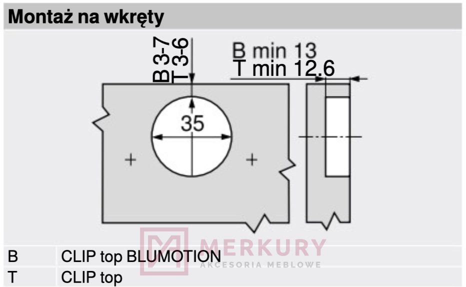 • Zawias meblowy maksymalnie nakładany BLUM 79B3450 BLUMOTION Clip-T 110° kątowy -45°