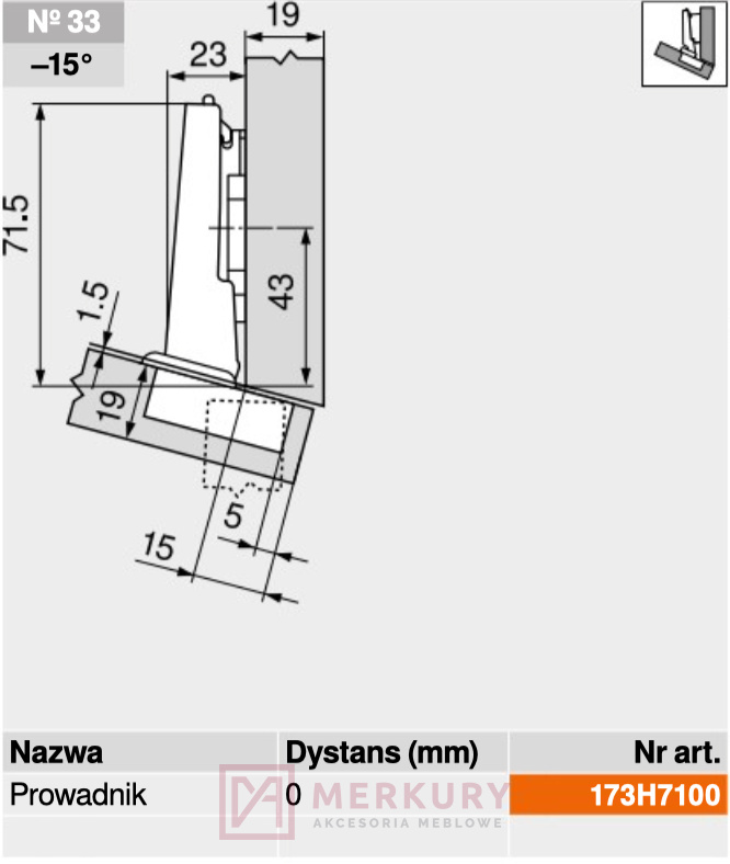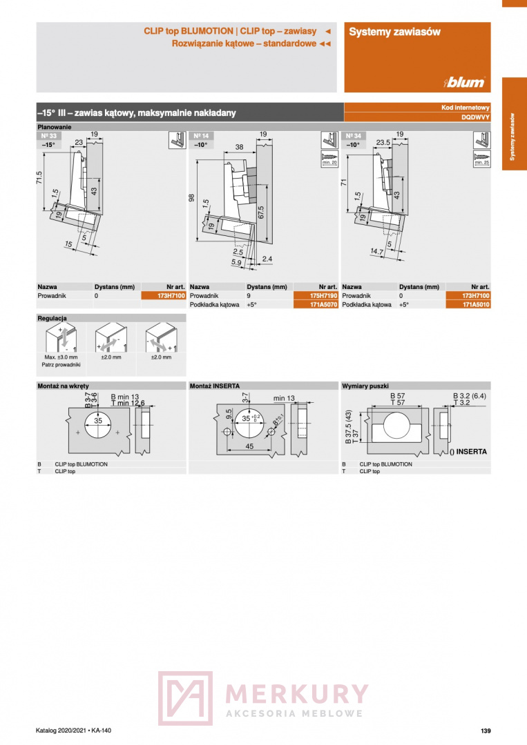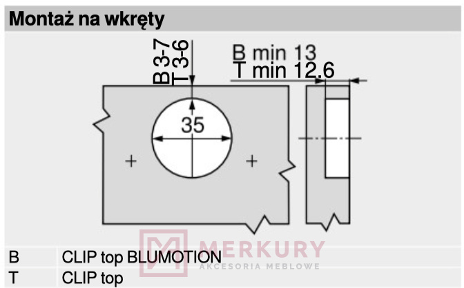 Zawias meblowy maksymalnie nakładany BLUM 79B3453 Clip-T 110° kątowy -15°