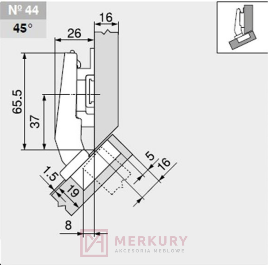 Zawias meblowy maksymalnie nakładany BLUM 79B9458 Clip-T 95° kątowy 45°