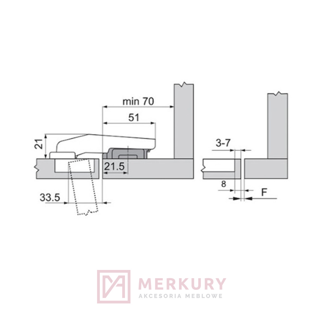 Zawias meblowy równoległy wpuszczany BLUM 79T9550 Clip-T 95°